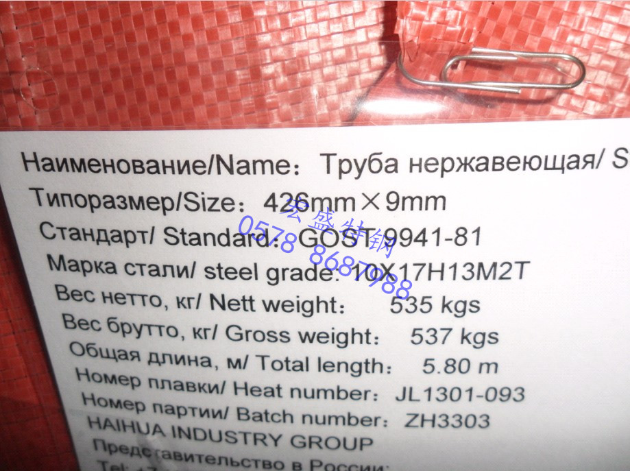 2.不銹鋼管的外徑及壁厚公差要求需達到GOST9941-81標準中較高級要求。