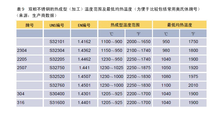不銹鋼管不需要焊后消除應(yīng)力處理,且進(jìn)行這樣的熱處理可能是有害的。因?yàn)樗墒闺p相不銹鋼析出金屬間相或α’(475℃/ 885°F)脆性相,降低韌性和耐蝕性。不銹鋼管的焊后熱處理應(yīng)當(dāng)是完全固溶處理后水淬(見(jiàn)表9)。在氣焊后應(yīng)考慮完全固溶退火,因?yàn)槿绻诤附舆^(guò)程中沒(méi)有超合金化的填充金屬,顯微組織中鐵素體含量將很高。 如果焊后進(jìn)行完全固溶處理和急冷,如在零部件制造中那樣,則熱處理應(yīng)視為焊接工藝的一部分。固溶處理可解決與鐵素體和金屬間相有關(guān)的問(wèn)題,該加工工藝允許在成品固溶處理前存在一些不太希望的中間狀態(tài)www.aoken.net.cn